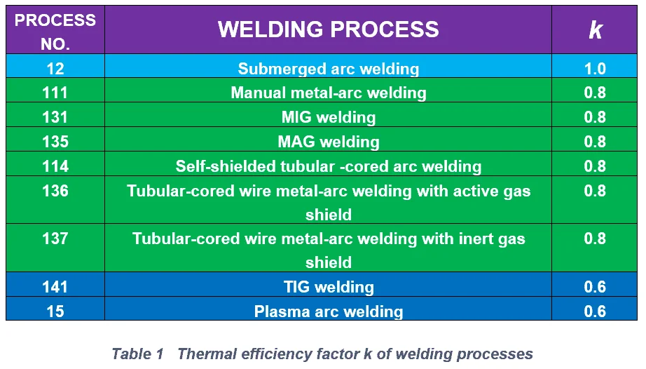 Welding Efficiency of Different Welding Processes are given in the below table.